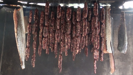 Fabrication des saussices qui seront boucanées.