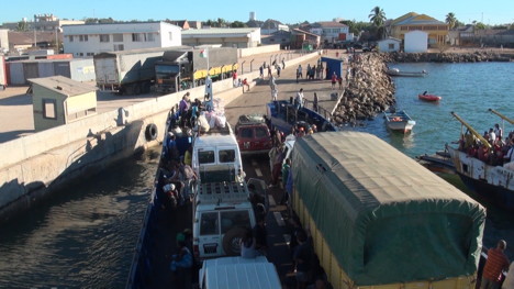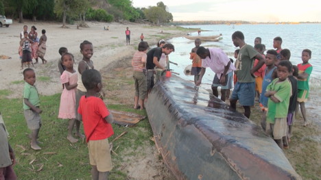 Arrivée du gros bac Baobab sur la plage de Kapsety.