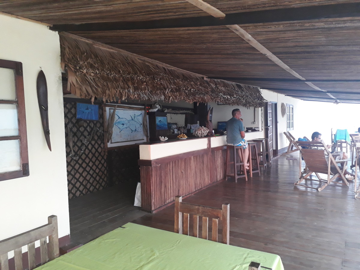 Bar de l'hôtel face à la plage, les pieds dans le sable.