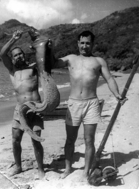 Arrivé en 1953 pour son premier poste à Fort de France, Jacques se passionne pour la mer. Une bonne bande de copains font les parties de pêche innoubliables. Les fusils sont faits maison, avec de gros moulinets, beaucoup de fil et un armement en plusieurs encoches grace à des sandows fabriqués à partir de chambres à air de tracteur...
