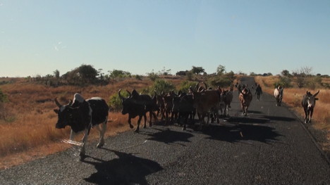 Dimanche 25. Les chasseurs marchent en début de matinée autour du camp à la recherche de cailles, perdrix, pigeons verts... Puis nous partons tous en promenade vers les grottes d'Anjohibe. Plus d'une heure et demie de piste pas facile, avec de rares petits villages.