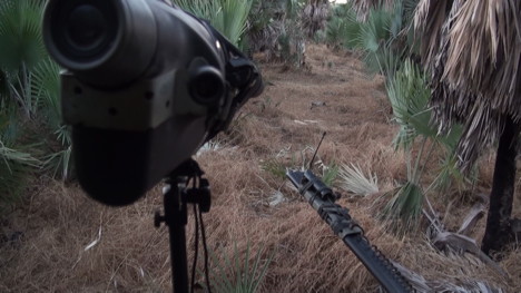 Une Génération 2, pas mal. Les alentours sur la droite.Mais ça ne sera pas mon soir, un est venu mais s'est sauvé dès l'allumage de la lampe. Là c'est celui de Pascal, un moyen. Sa vision était bien dégagée et 3 sont venus boire à la tombée de la nuit vers 19h. Kino à un troisième poste a fait un gros mâle. Retour au camp vers 23h.