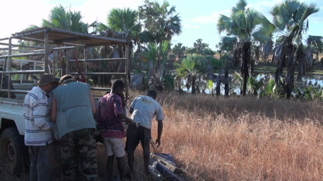 Déchargement des 4x4 et installation. Romazava à midi.