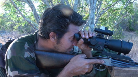 Il fait encore jour et je n'ai pas encore installé la lunette que deux sangliers approchent craintivement par la gauche. Le premier qui dépasse des buissons prend ma balle qui le sèche sur place. Une femelle dans les 40 Kg. Les autres, rien.