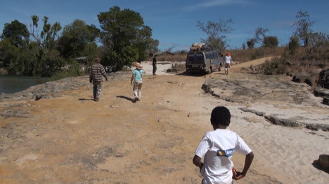 Les quatre 4x4 arrivent à Kinkony. Il est 15h.