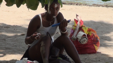 Jeune fille en plein maquillage traditionnel Sakalava