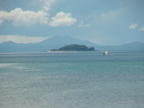 Vue vers la gauche sur Nosy Tany Kely (petite terre) et les reliefs de la grande terre au fond