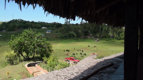 Vue de sa chambre sur les pâturages de zébus