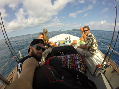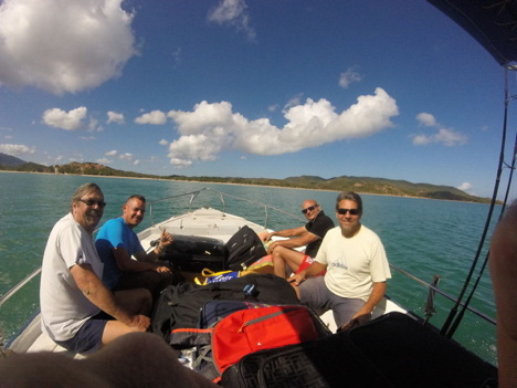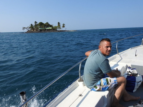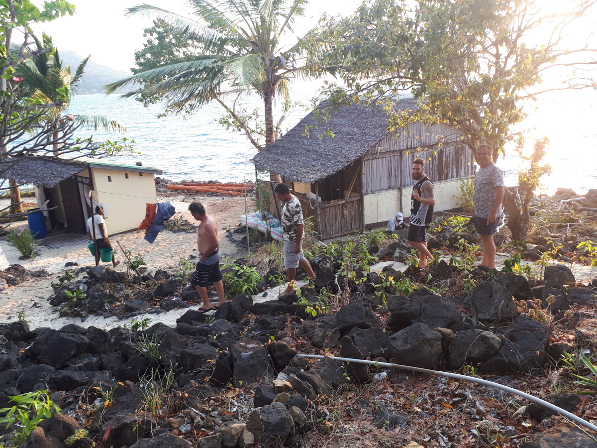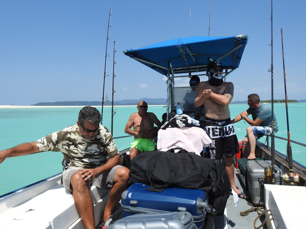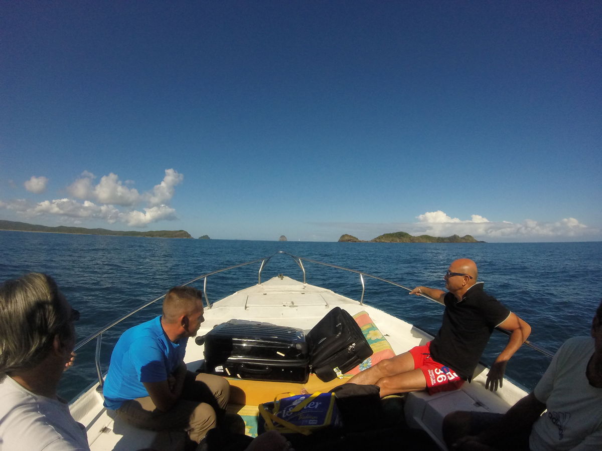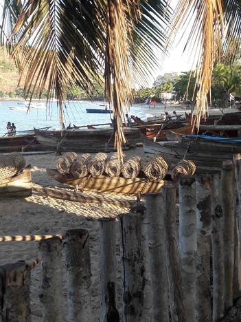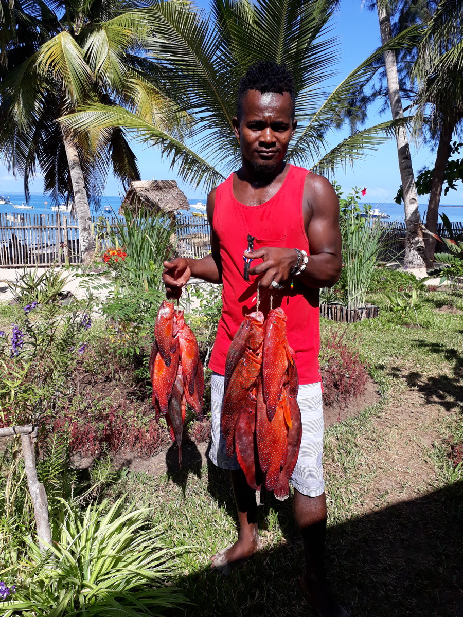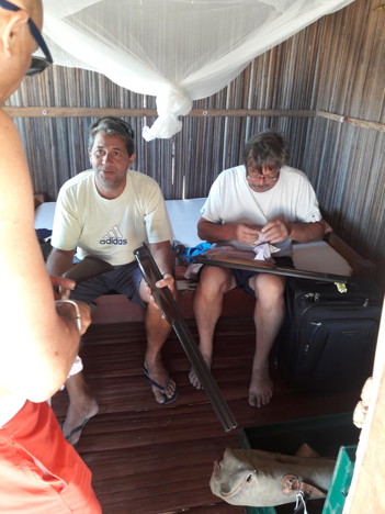 Lundi 7h. Le marin Didier accoste son bateau devant la villa et nous chargeons tout le nécessaire pour notre séjour de 3 jours en brousse. Il est accompagné de sa femme, de son gamin et de son cuistot, William.