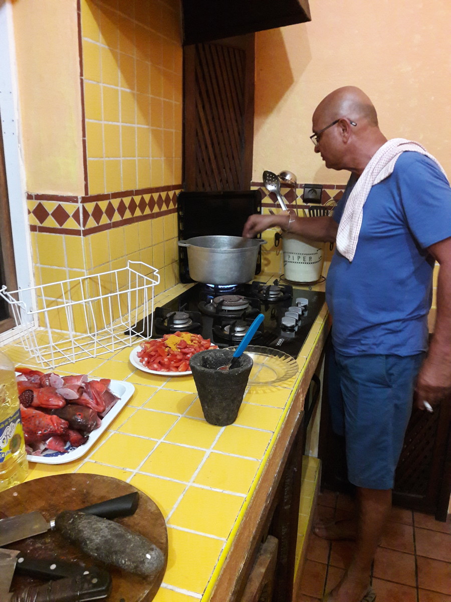 Arsène nous fait un carri et David un rôti créole dans la cuisse. |