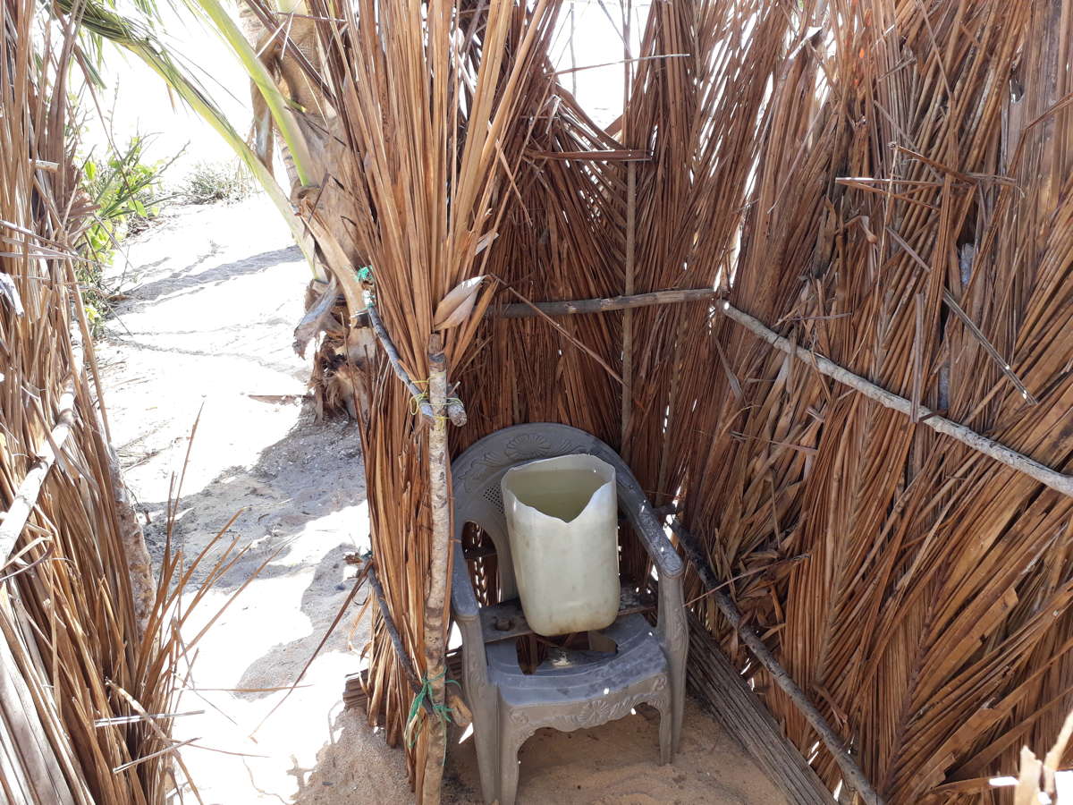 Notre salle d'eau à coté de la première case. Pour le reste c'est où l'on peut dans la nature !