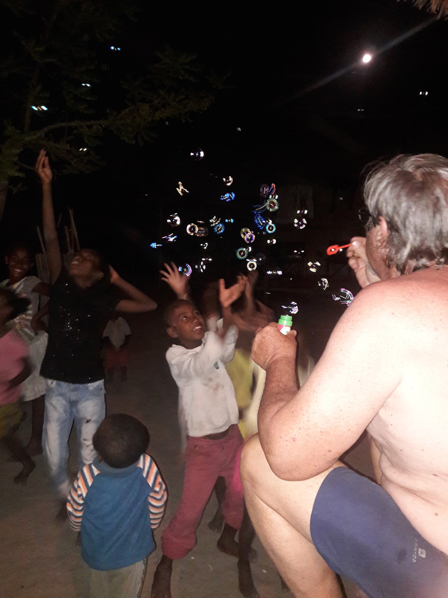 La nuit est tombée, annimation bulles de savon pour les enfants pour la première fois de leur vie, une folie !