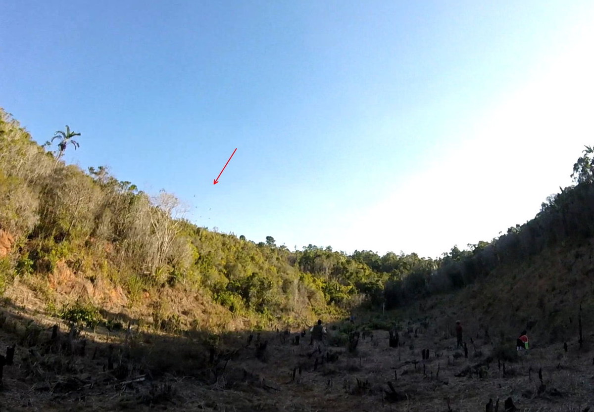 De quand date la végétation que nous traversons ici et là ? On est à l'origine, non ? Pas de pintades non plus dans les environs. Sur le chemin du retour, sur le terrain de foot, Pascal tire cet oiseau que je ne connais pas. De la famille des columbidae, les malgaches l'appellent "pigeon"... |