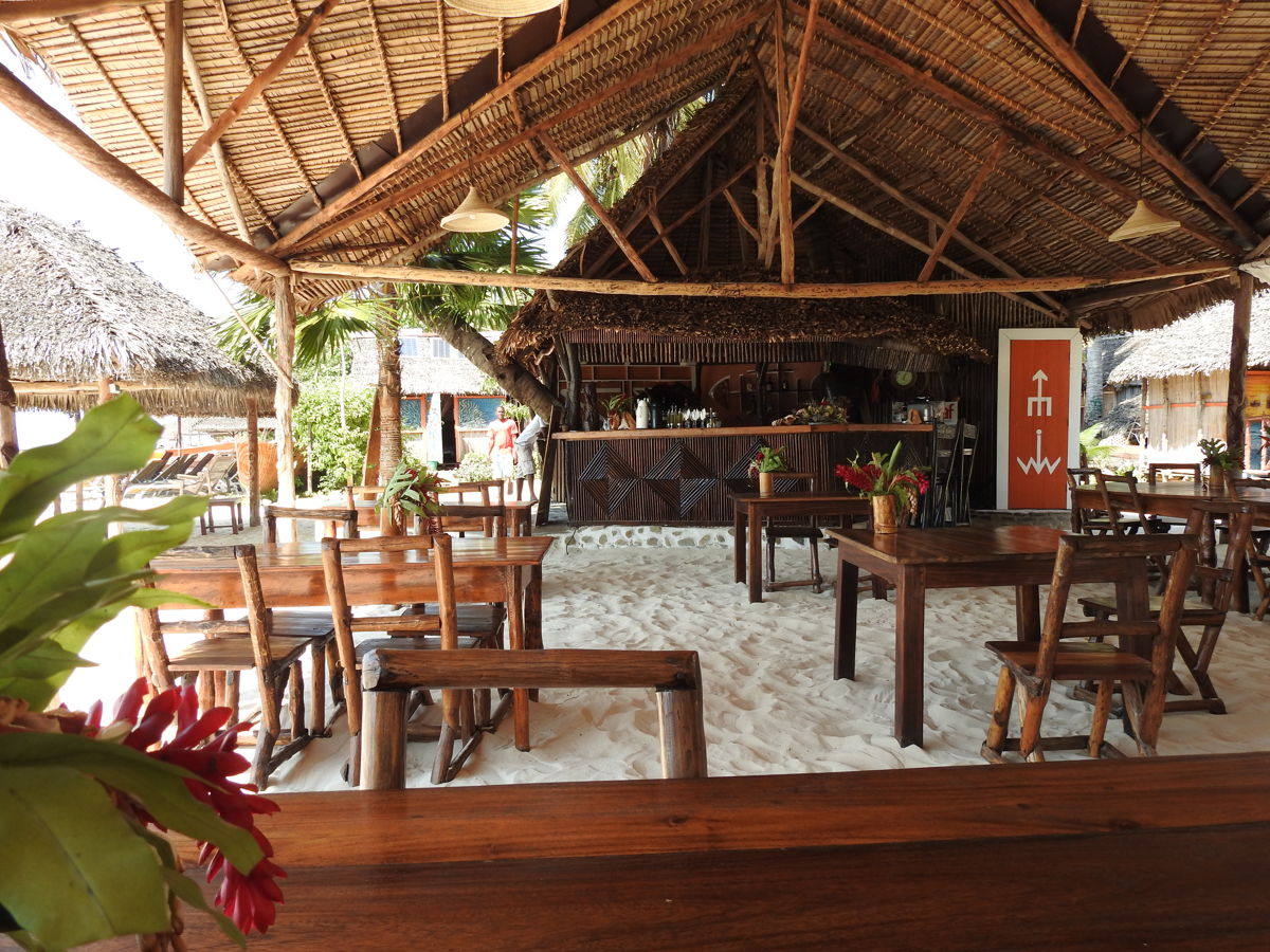 Bar de l'hôtel face à la plage, les pieds dans le sable.
