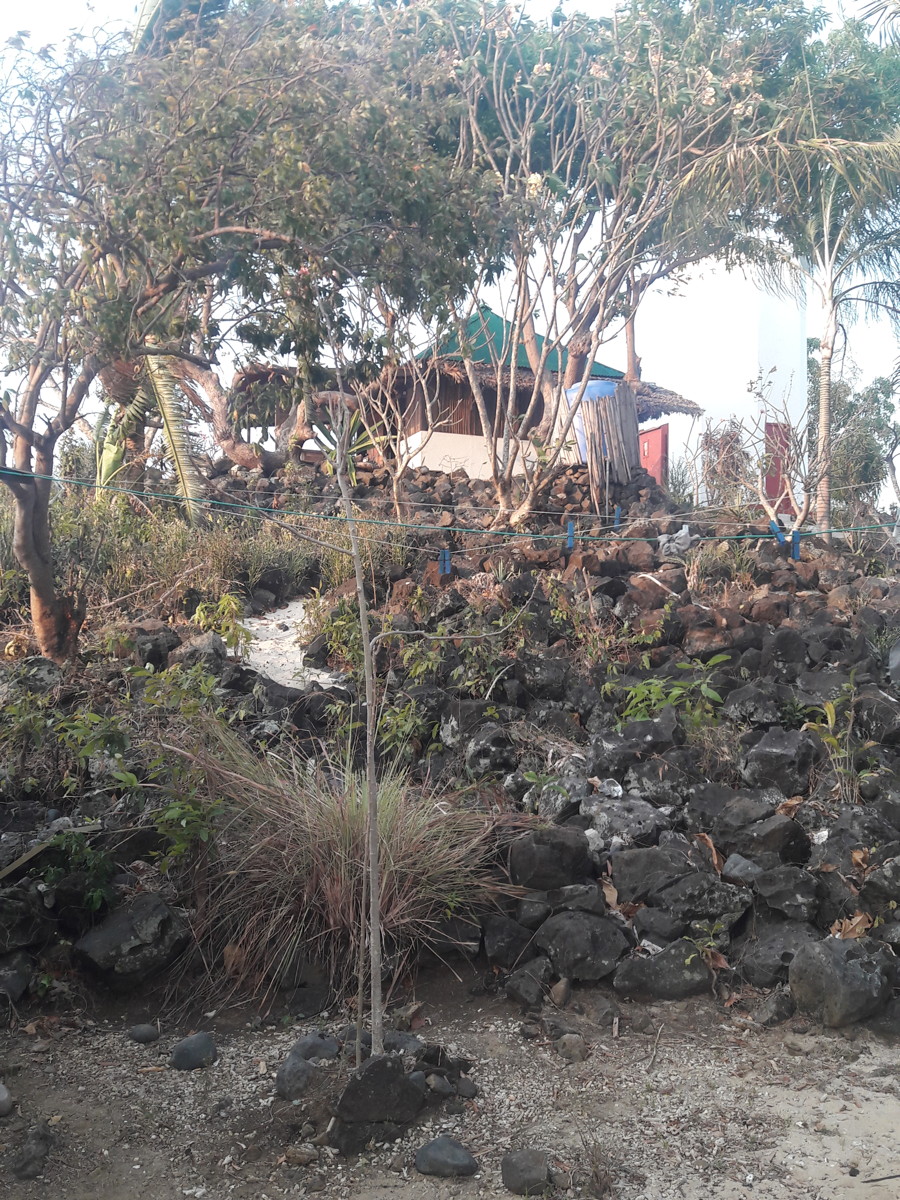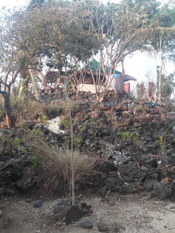 La première case. 2 chambres, coin cuisine à droite et une terrasse où nous prenons les repas.