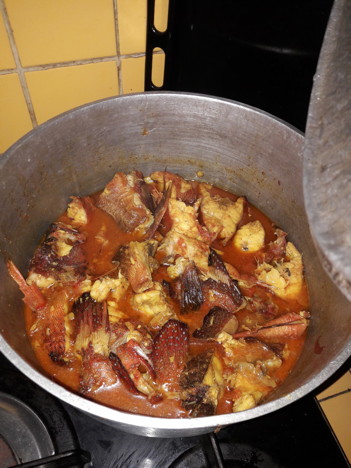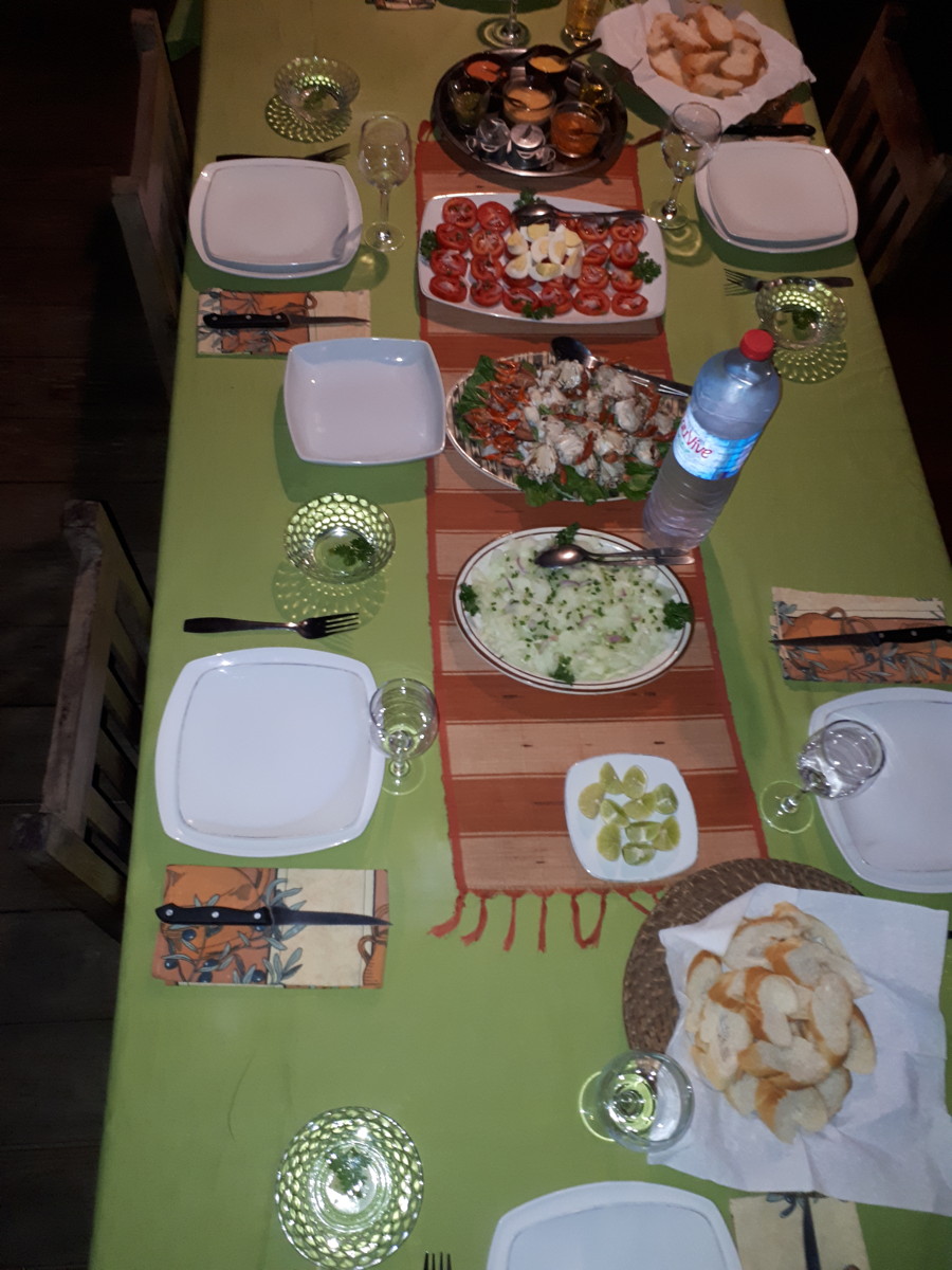 Un carri poisson rouge préparé avec amour par David. Une belle tablée avec nos invités Nico et Samira, Fred et Tata. |