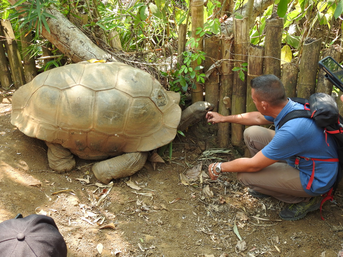Voici Napoléon, une tortue d'Aldabra, un mâle de 218 ans. Il y a aussi Joséphine, sa femelle et un autre mâle, Bonaparte.
