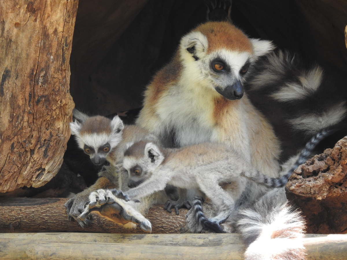 Ci-dessous, photo assez rare d'une maki Catta avec des jumeaux. |