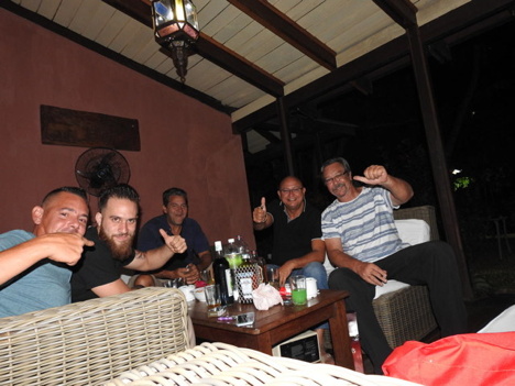 | On poursuit l'apéro chez mon ami Capitaine chez qui nous passons pour récupérer nos affaires de chasse. Toujours bon accueil, il a encore agrandi d'un bungalow.