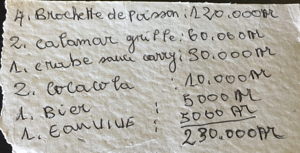 Puis direction Ambatoloaka pour dîner au resto, tenu par un polonais... Nous finissons la soirée en face au bar billard pour un dernier verre, et des derniers verres... |
