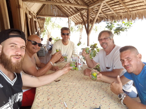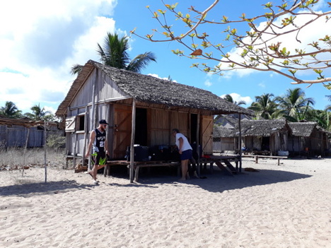 | Après les formalités d'arrivée, nous traversons l'île pour aller saluer notre ami Nicolas. Il est 14h, il fait faim. A 20m de chez lui, au Nandipo, nous dégustons le traditionnel Caïpirinha avant notre premier filet de zébu. Obligé... | ||||||||||||||||||||||||||||||||||||||||||||||||||||
