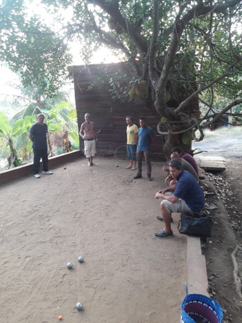 Après le déjeuner chez Nico (pintade en carri), nous la faisons enfin cette partie de pétanque chez Fred ! |
